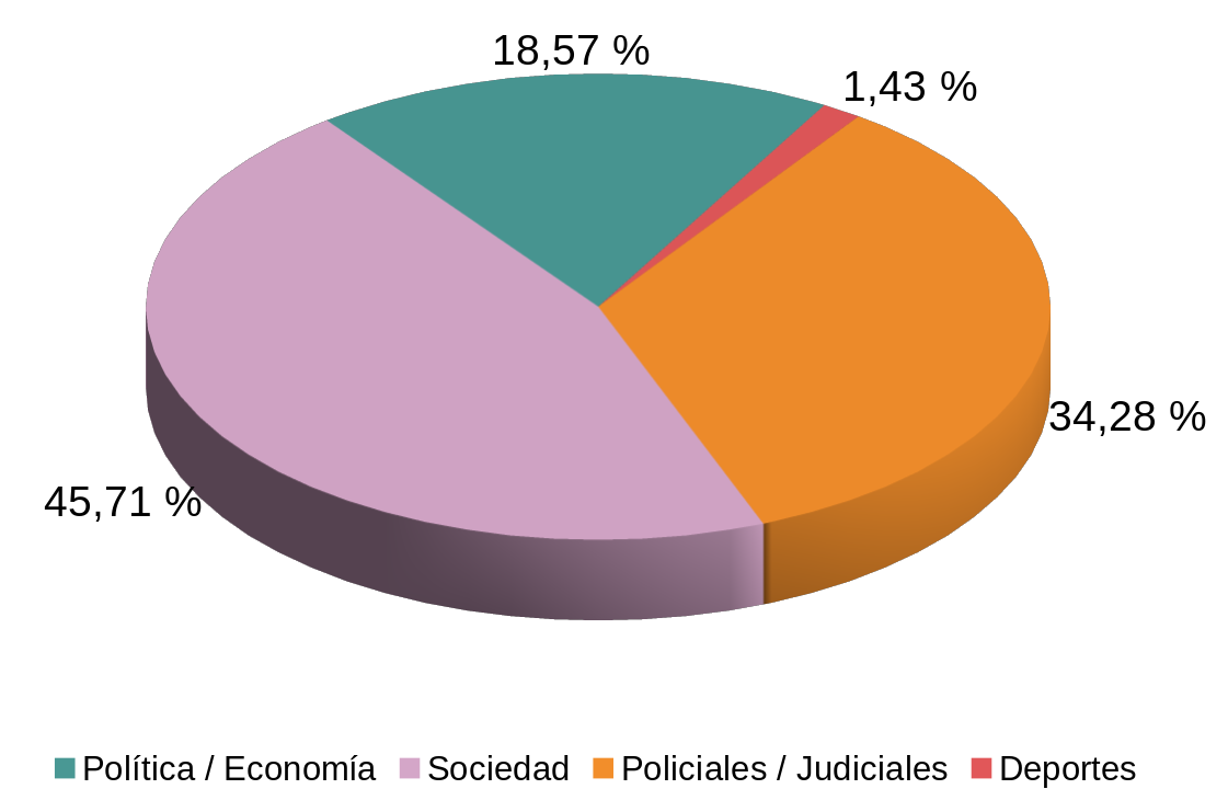 En cambio, el periodismo basado en el relato de acontecimientos queda restringido en mayor medida a los sucesos policiales, aunque curiosamente es en estos dónde predomina la omisión de fuentes.